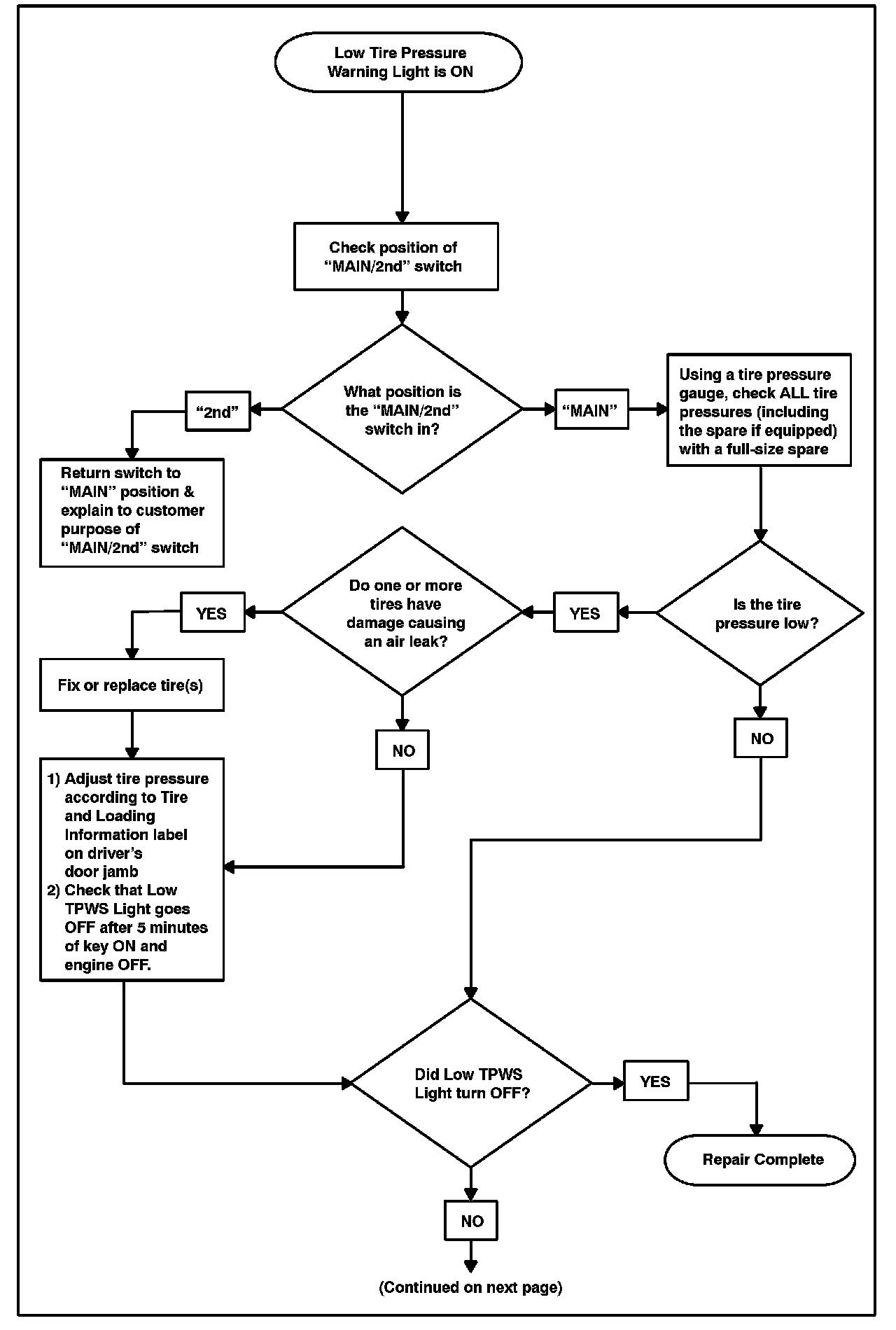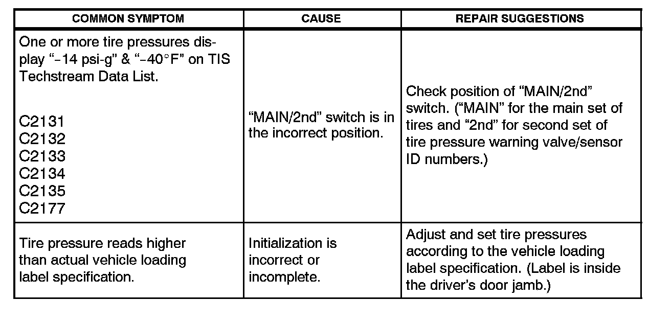 ^ "MAIN/2nd" switch in the UP position The TPWS ECU is programmed to read the main set of tire pressure warning valve/sensor ID numbers.