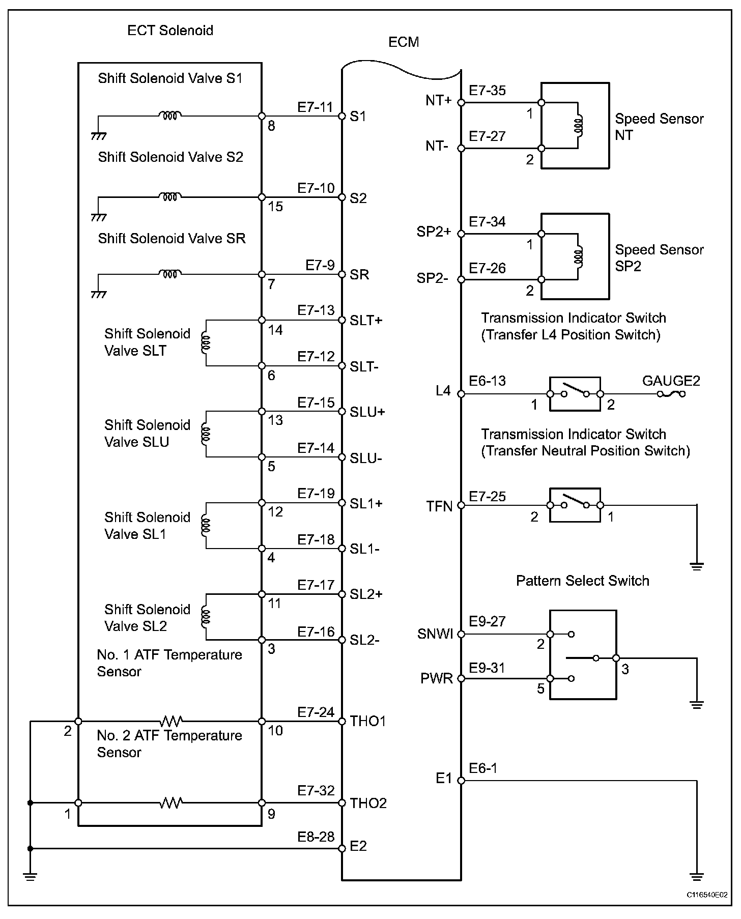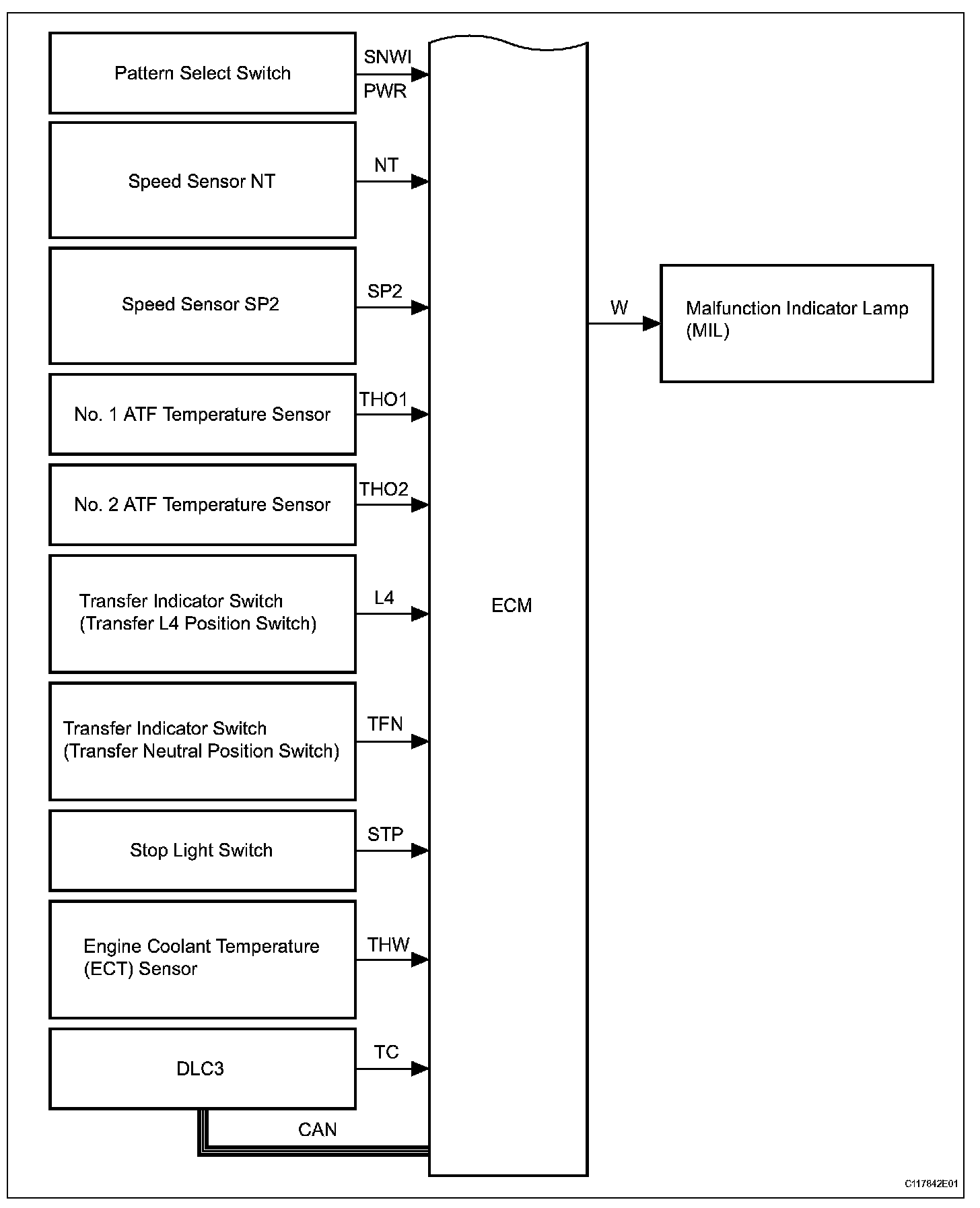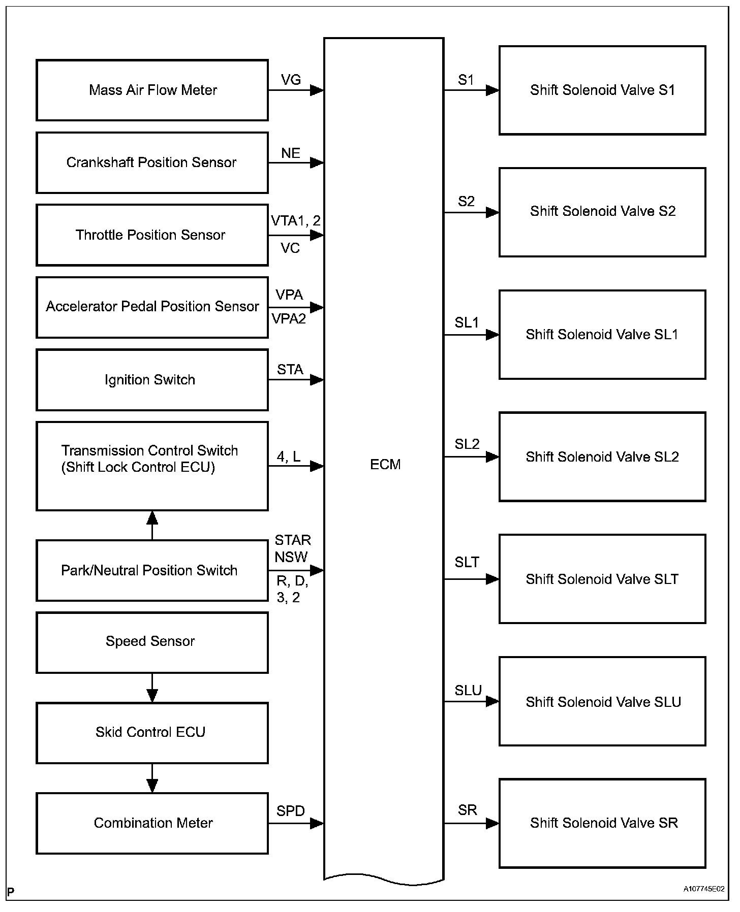 SYSTEM DIAGRAMThe configuration of the electronic control system in the A750F automatic transmission is as shown in the following chart.