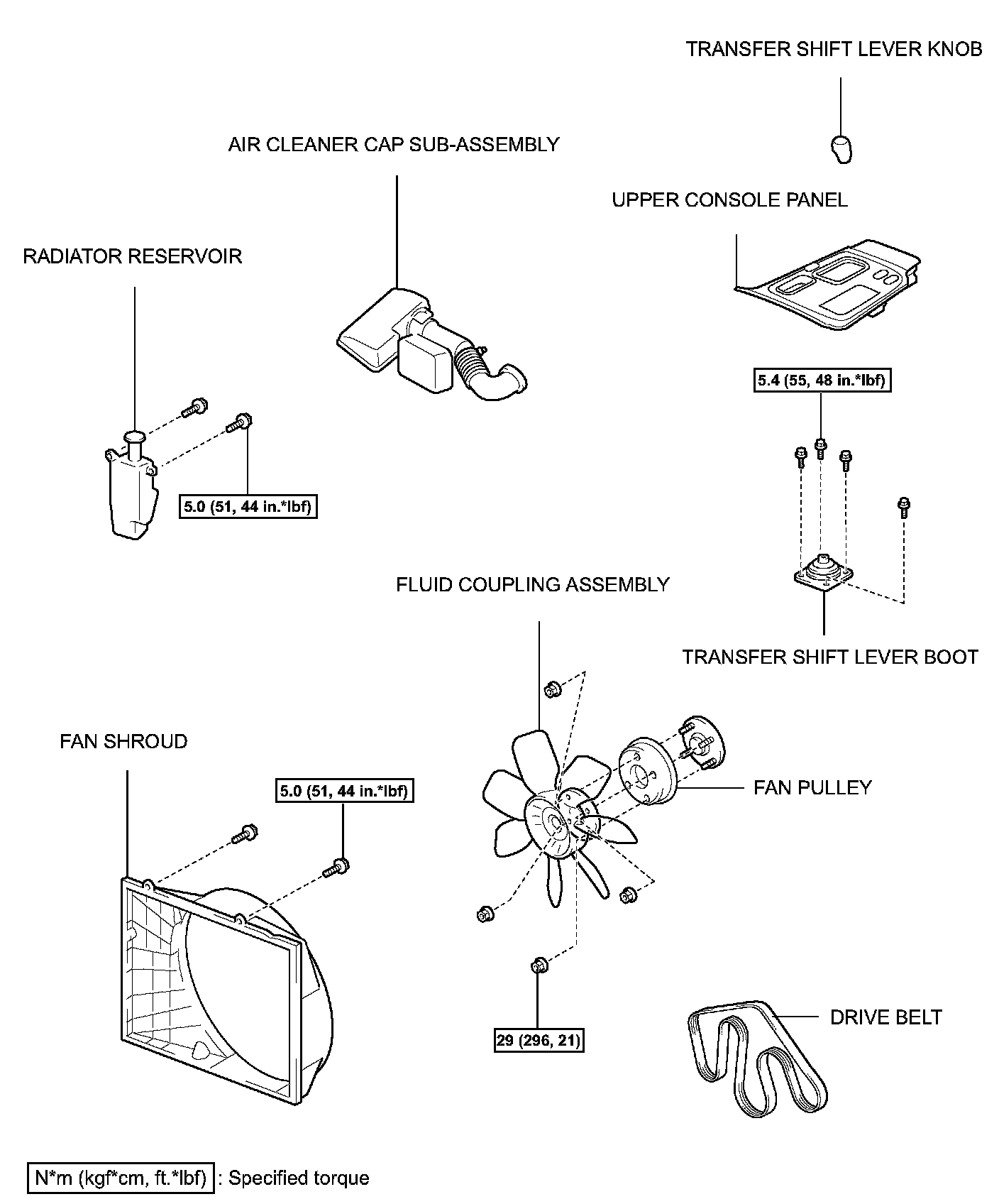 3. REMOVE DRIVE BELT, FAN AND FLUID COUPLING ASSEMBLY, FAN SHROUD AND RADIATOR RESERVOIR