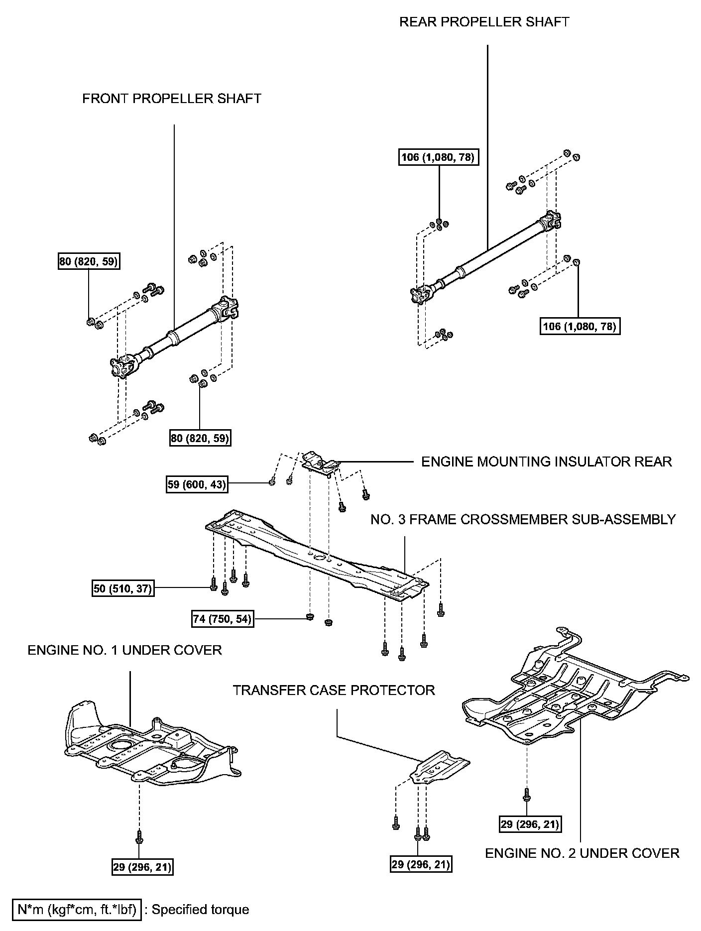 16. REMOVE CROSSMEMBER AND TRANSFER CASE PROTECTOR