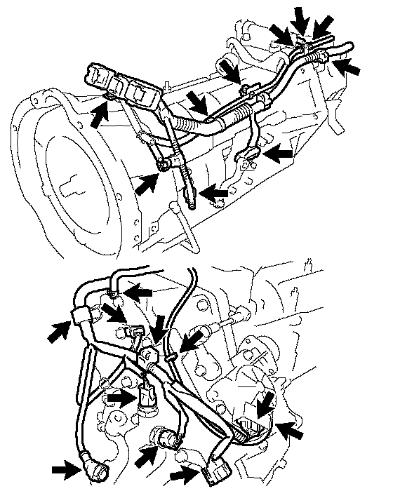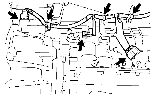 e. Disconnect the 5 hoses and remove the wire harness and hose.