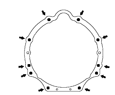 c. Hold the crankshaft pulley nut with a wrench, and remove the 6 bolts.