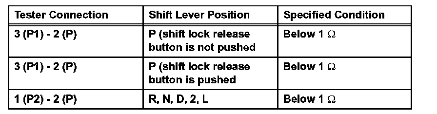 2. INSPECT SHIFT LOCK CONTROL SWITCH