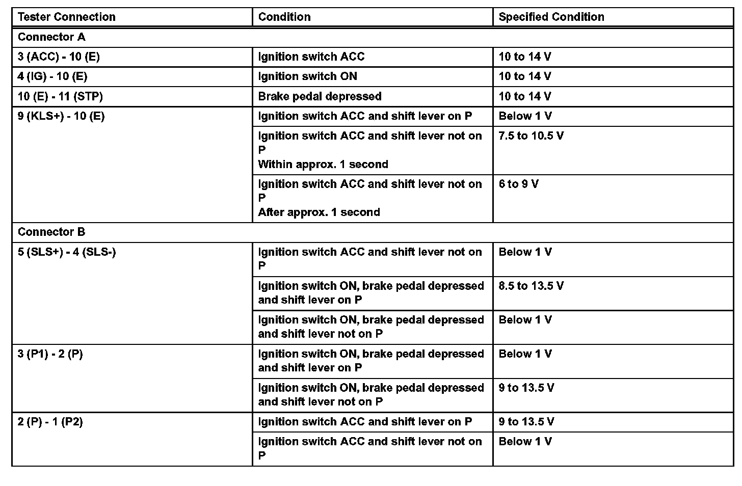 CHECK SHIFT LOCK CONTROL ECU