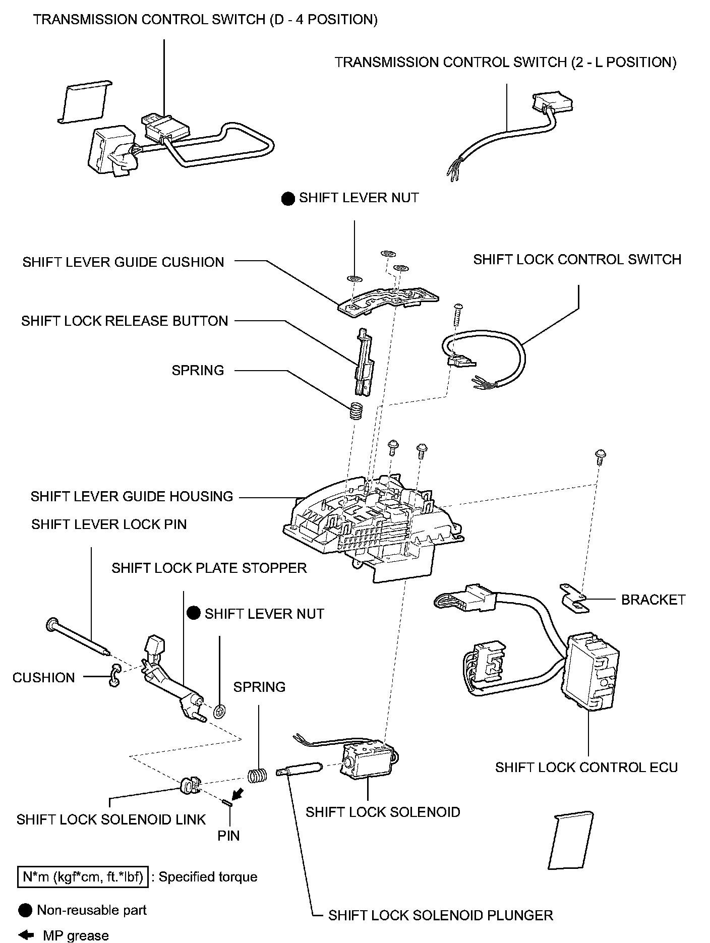 d. Apply MP grease to the shift lock release button.