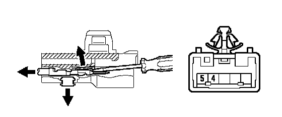 b. Release the locking lug of the terminal 4 and 5, and pull the terminals out from the rear.