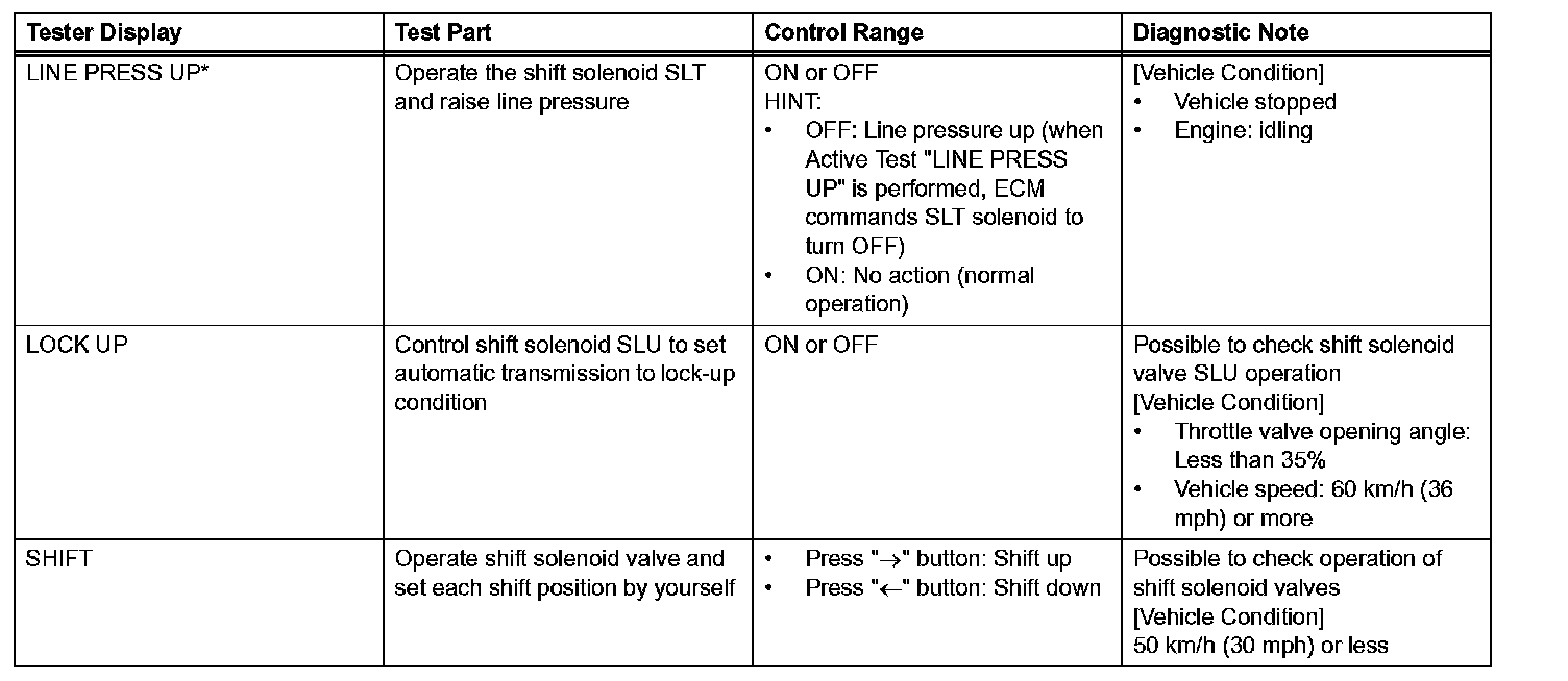 *: LINE PRESS UP in the ACTIVE TEST is performed to check the line pressure changes by connecting SST to the automatic transmission, which is used in the HYDRAULIC TEST as well. Hydraulic Test
