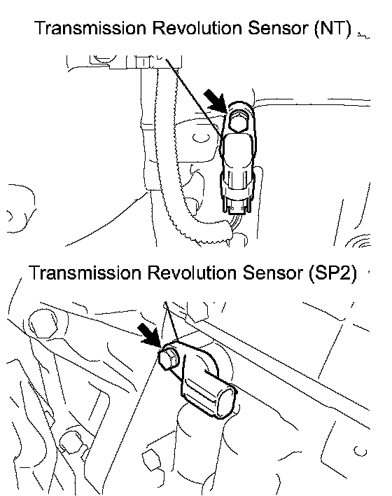 2. REMOVE TRANSMISSION REVOLUTION SENSOR (NT) AND (SP2)