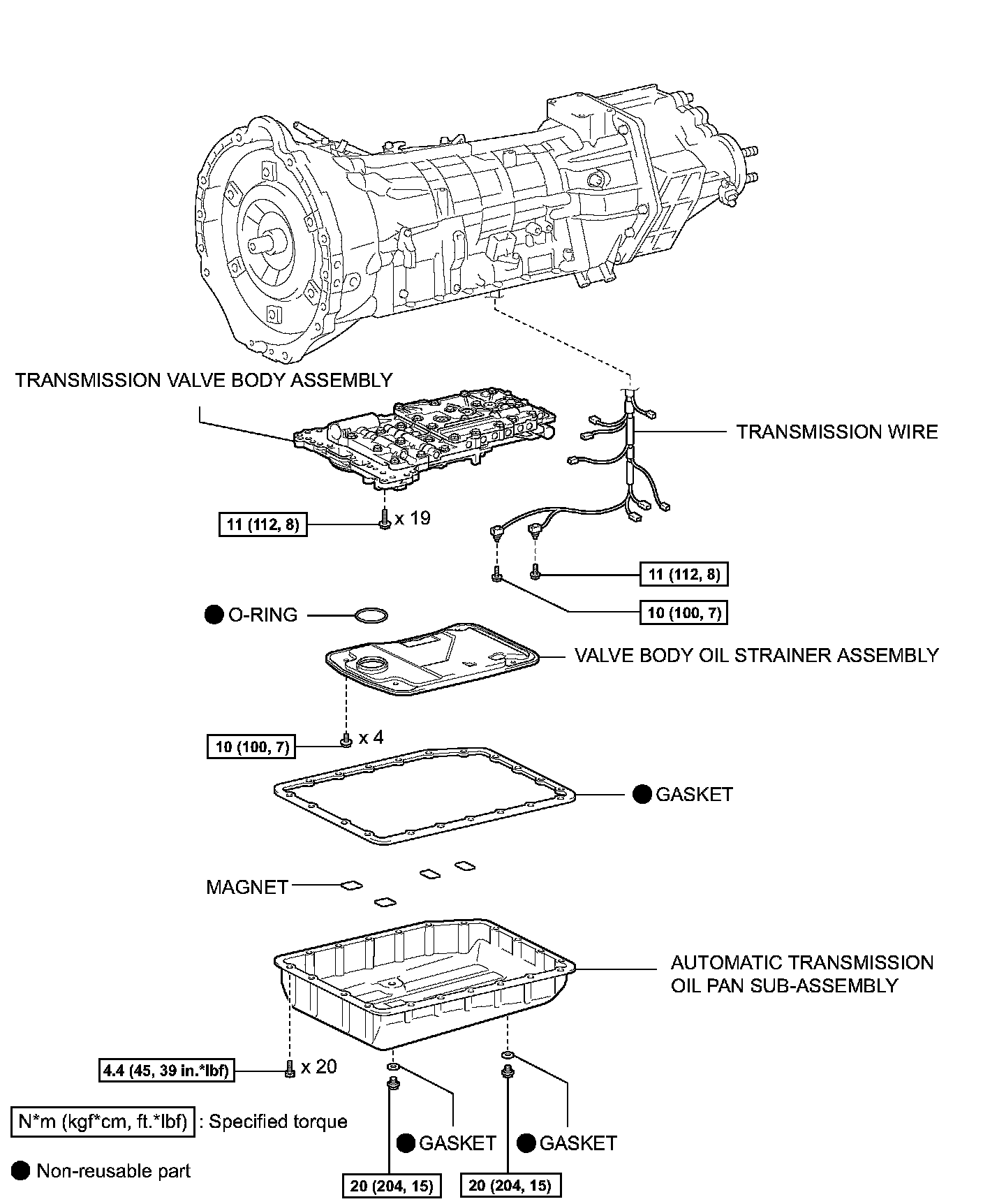 a. Remove the 19 bolts and valve body