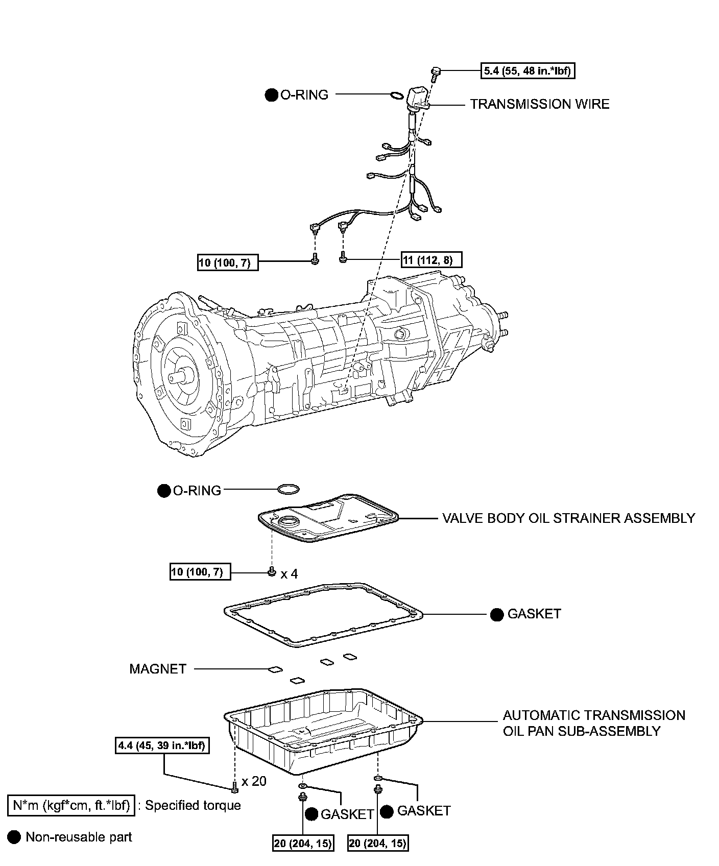 HINT: Remove the gasket and be careful not to spill oil on the contacting surfaces of the transmission case and oil pan.