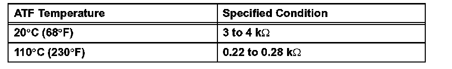 HINT: If the resistance is out of the specified range of either of the ATF temperatures shown in the table, the driveability of the vehicle may decrease.