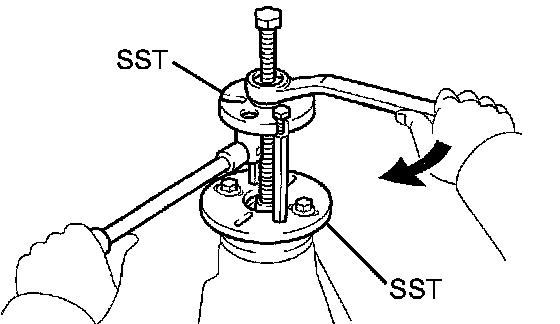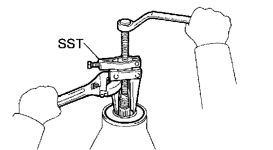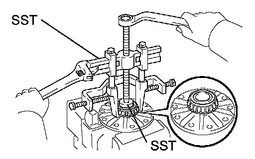 a. Using SST, remove the rear bearing outer race.