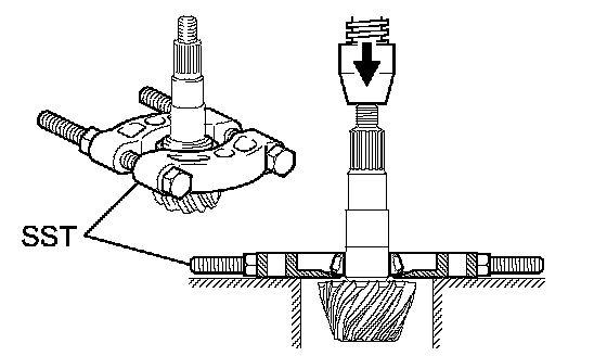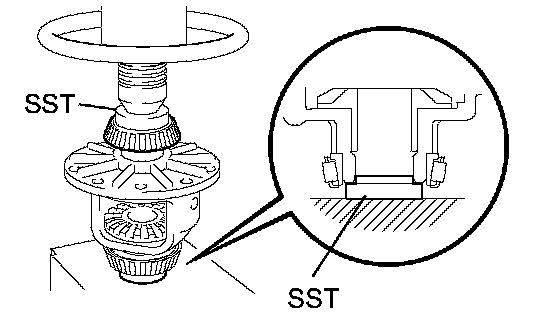 a. Using SST and a press, remove the bearing from side gear shaft.