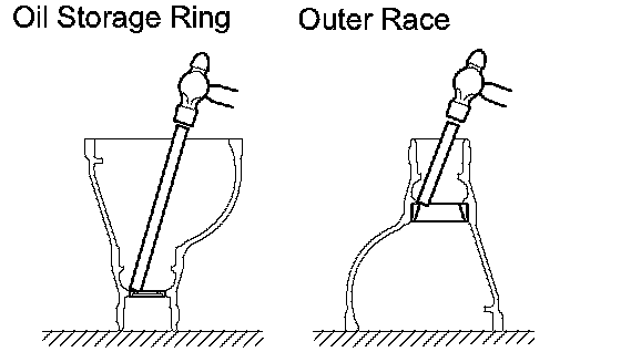 b. Using a brass bar and hammer, remove the oil storage ring and front bearing outer race.