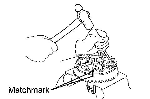 b. Tap on the ring gear with a plastic-faced hammer so that the washer fits to the bearing.