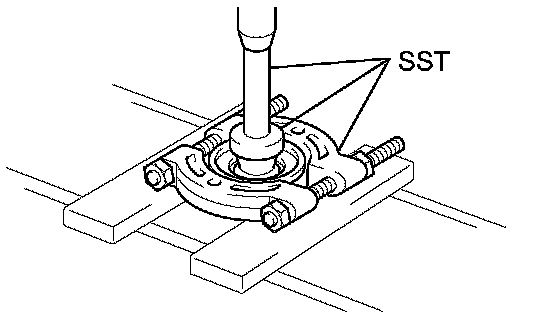 a. Using SST and a press, remove the front bearing from the drive pinion.