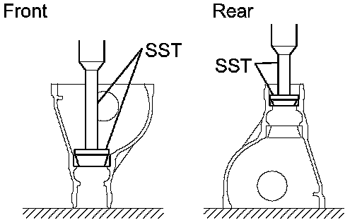 b. SST and a hammer, install 2 new oil seals.
