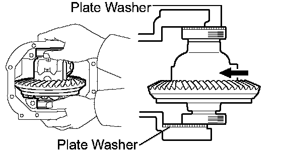 HINT: There should be no clearance between the plate washer and case. Make sure that there is ring gear backlash.