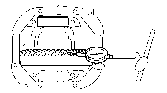 a. Using a dial indicator, while holding the drive pinion flange measure the ring gear backlash.
