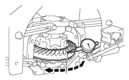 HINT: Measure at 3 or more places on the circumference of the ring gear. If the backlash is not within the specification, adjust the backlash.