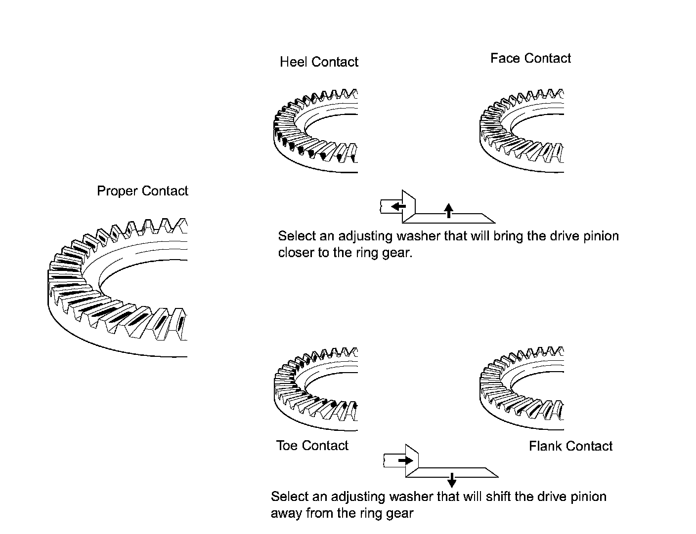If the teeth are not contacting properly, use the following table to select a proper washer for correction.