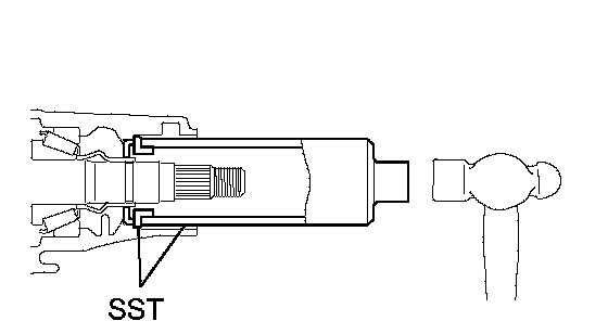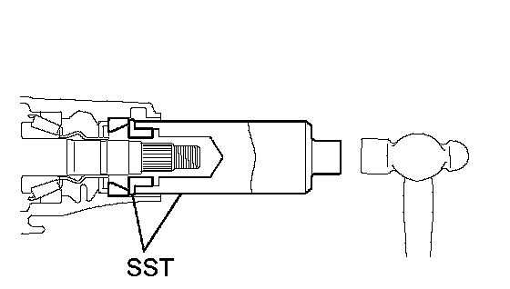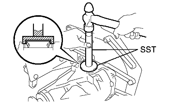 b. Using SST and a hammer, install a new oil seal.