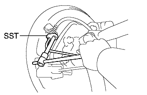 a. Using SST, disconnect the brake line and remove the clip.