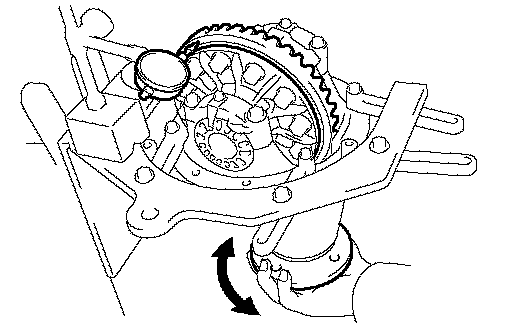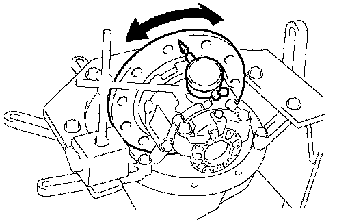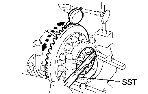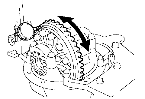 k. After rotating the ring gear 5 turns or more, recheck the ring gear backlash.