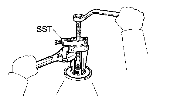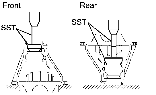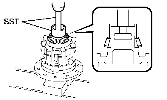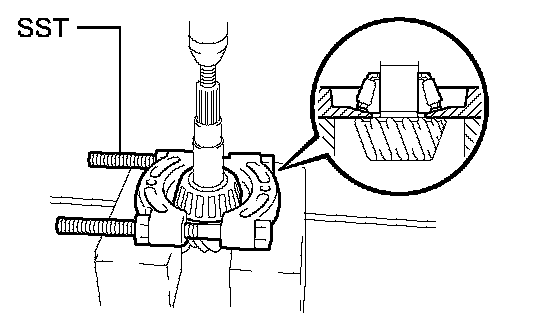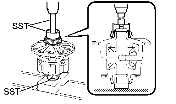 a. Using SST, remove the 2 side bearings from the differential case.