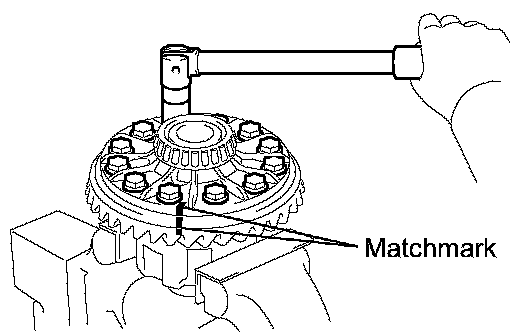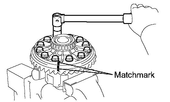 a. Place matchmarks on the ring gear and differential case.