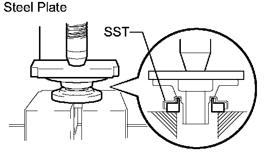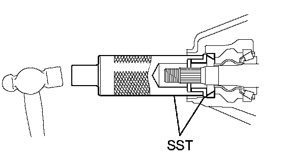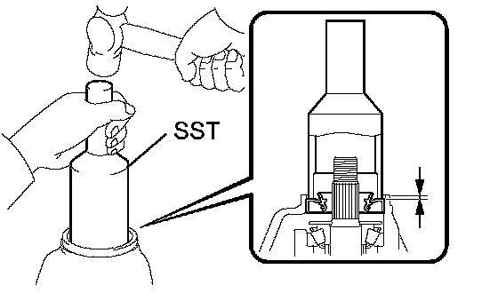 b. Using SST and a hammer, install the oil seal.