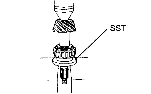 a. Using SST, remove the front bearing from the drive pinion.