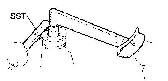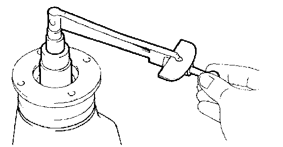 b. Using SST to hold the flange, remove the nut.