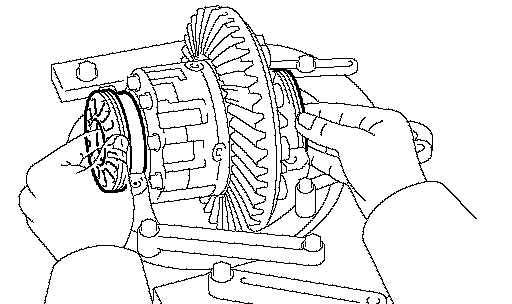b. Install the differential case onto the carrier and tighten the adjusting nut just to the point where there is no play in the bearings.