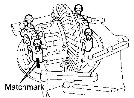 d. Align the matchmarks on the bearing cap and differential carrier.