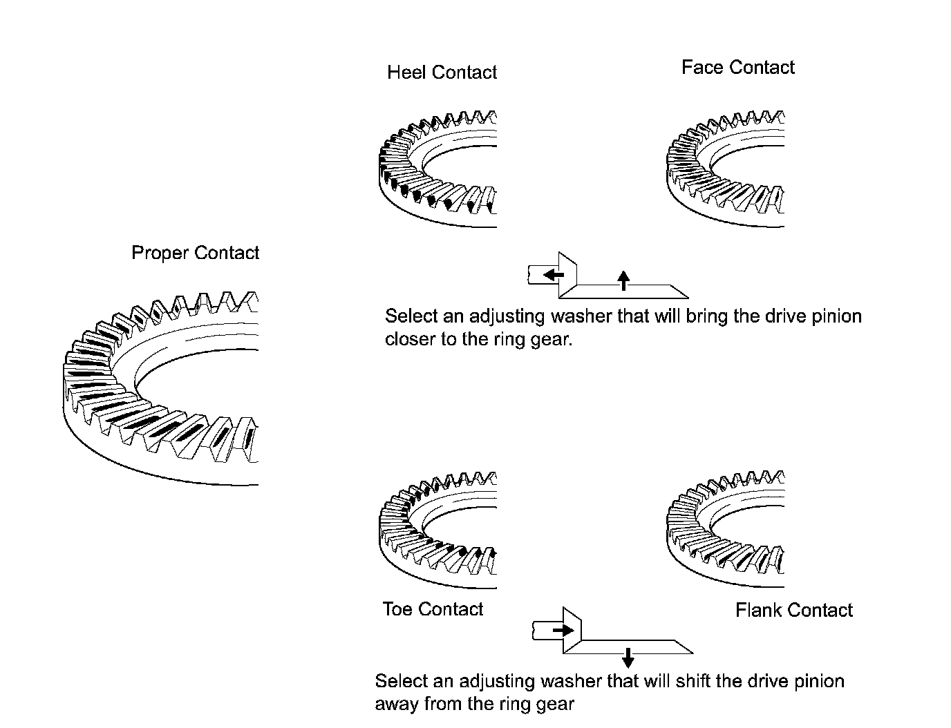 HINT: First fit a washer with the same thickness as the washer that was removed. then after checking the tooth contact pattern, replace the washer with one of a different thickness if necessary.