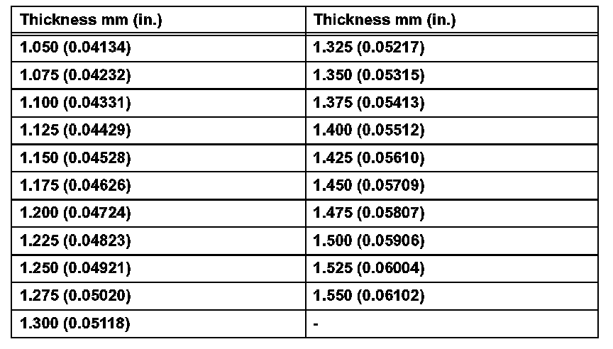 If the teeth are not contacting properly, use the following table to select a proper washer for correction.