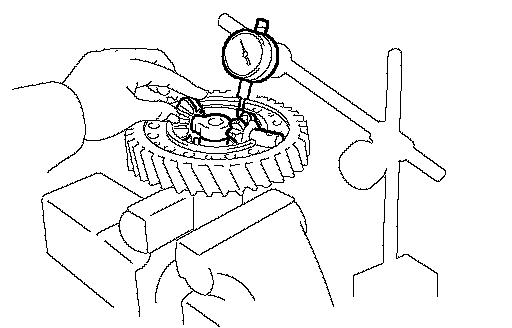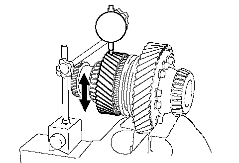b. Using a dial indicator, measure the high speed output gear radial clearance.