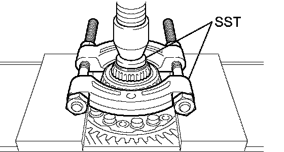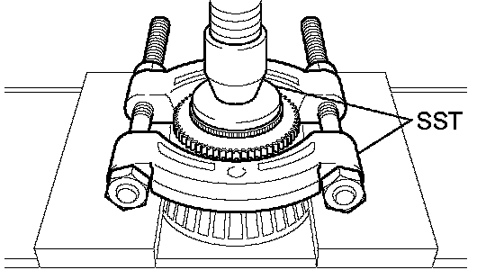 NOTICE: Set the claw of SST to the bearing inner race securely.