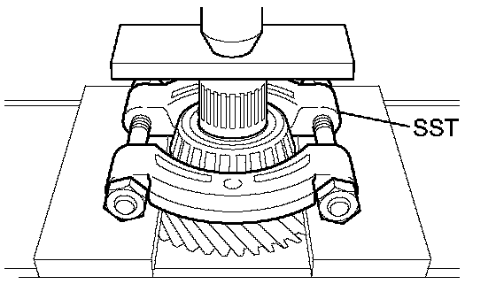 c. Using SST and a press, press in the high speed output gear bushing.