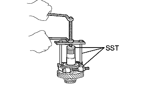 b. Using SST and a press, remove the front drive gear piece.