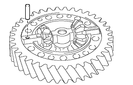 b. Using a magnetic finger, remove the straight pin from the front differential case.