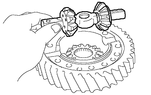 b. Install the pinion shaft, 2 pinion gears and thrust washers to the front differential case.