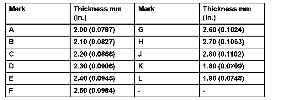 Standard clearance: 0.10 to 0.25 mm (0.0039 to 0.0098 inch)