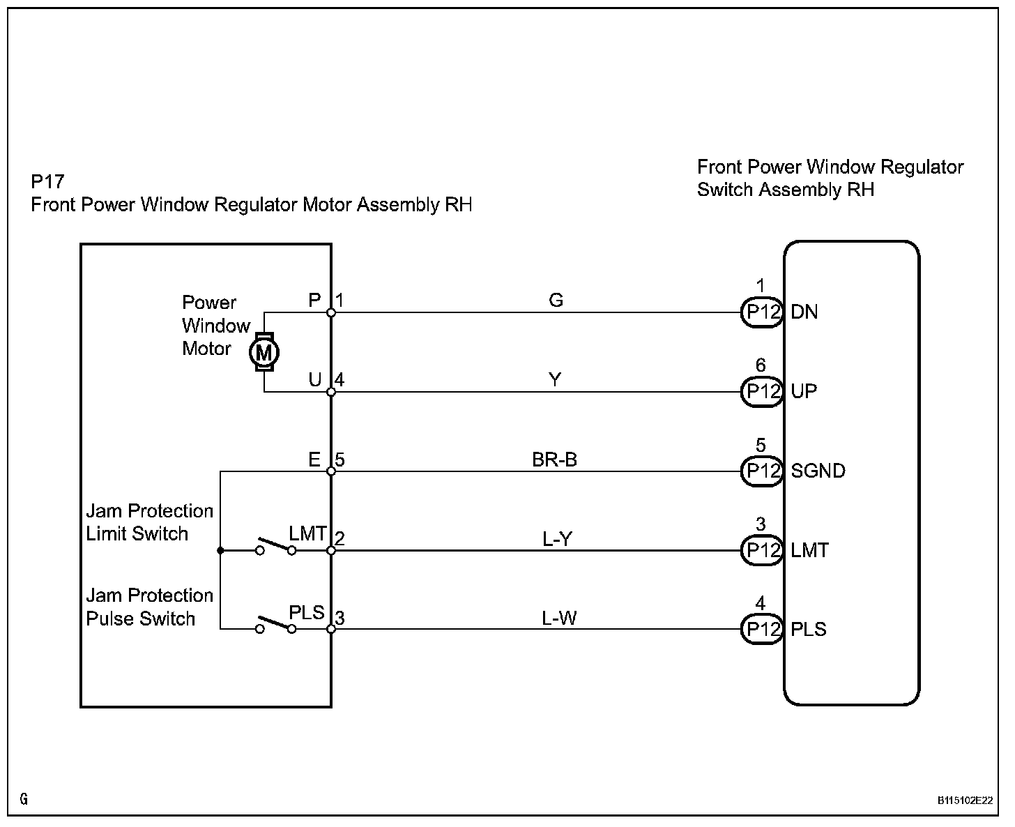Front Passenger Side Jam Protection Limit / Pulse Switch Circuit