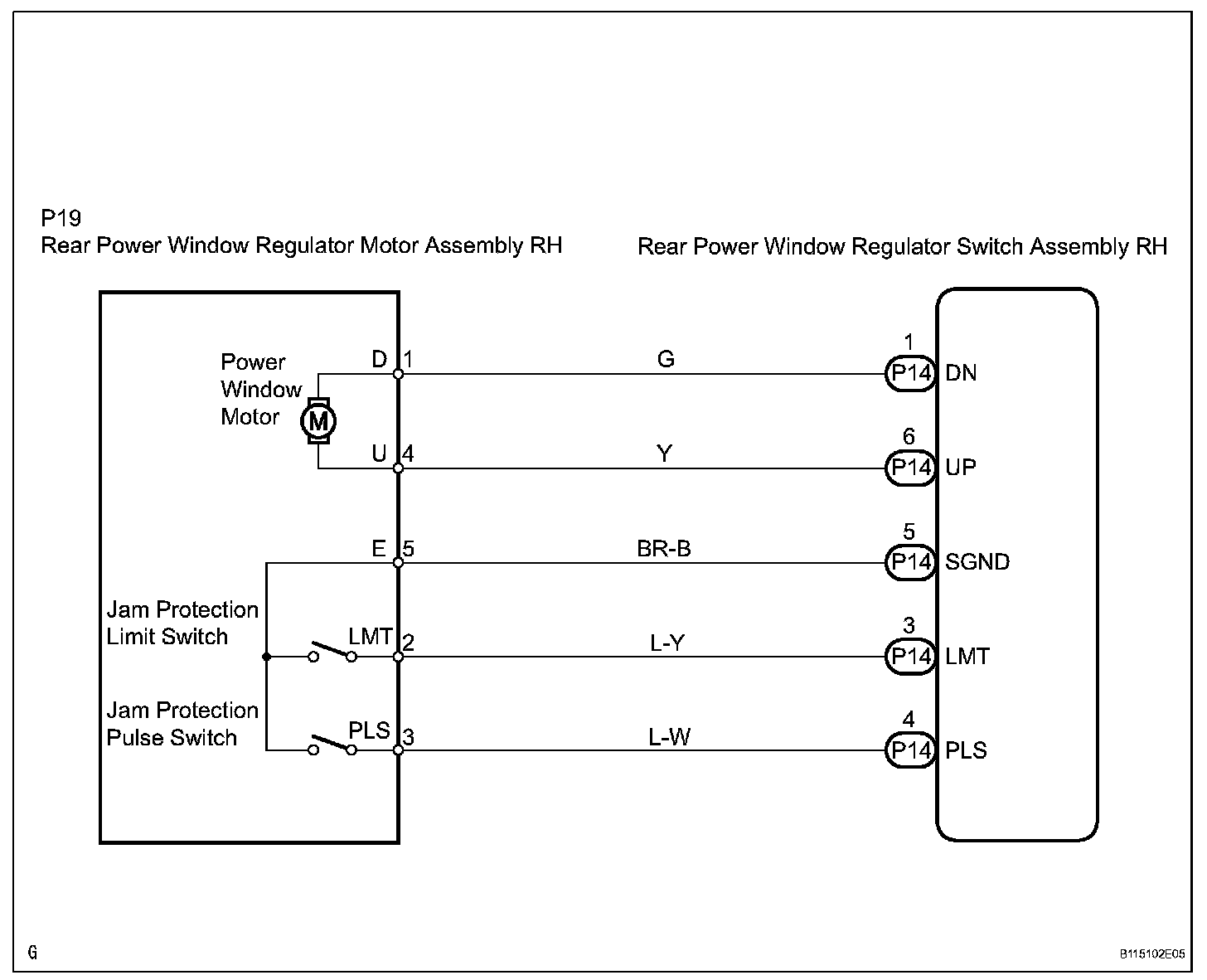 Rear Power Window Motor LH CircuitDESCRIPTION