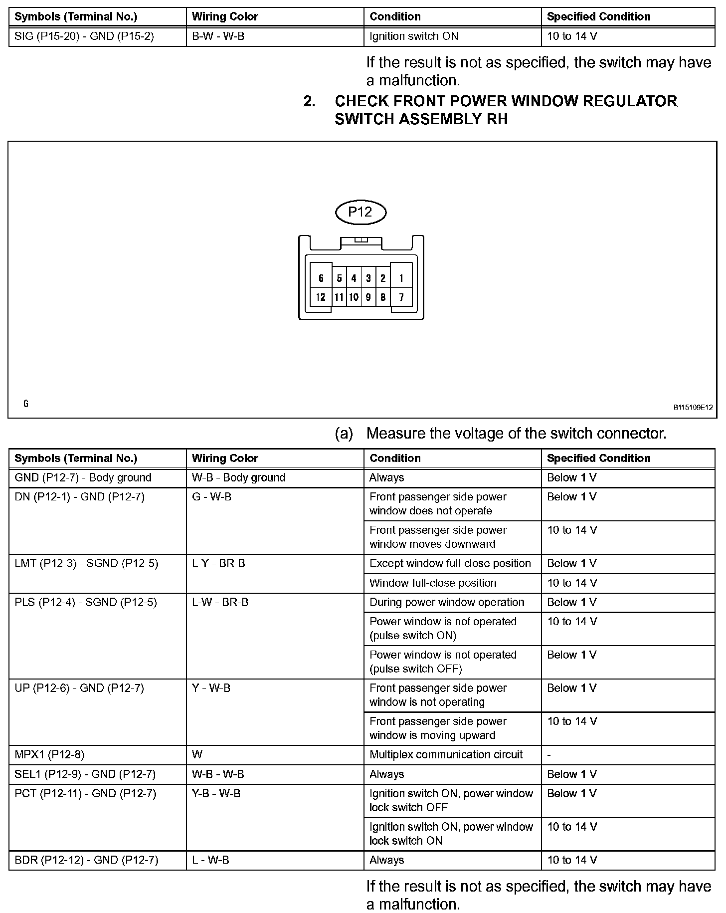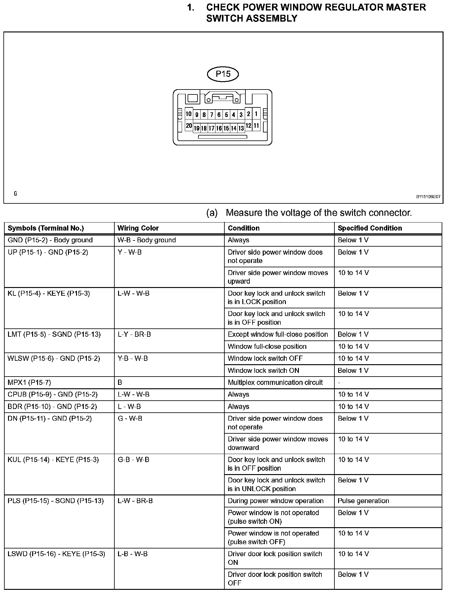 Pinout Values and Diagnostic Parameters
