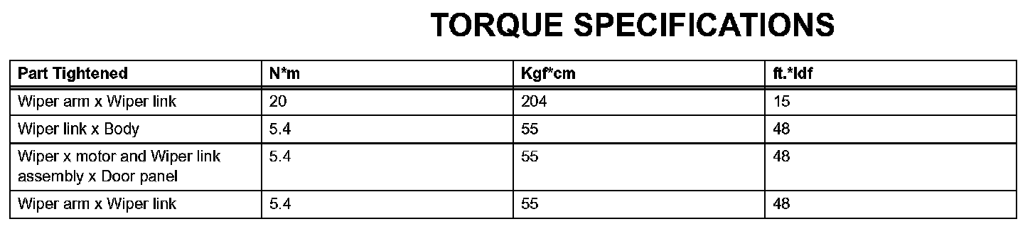 Wiper And Washer - Torque Specifications: