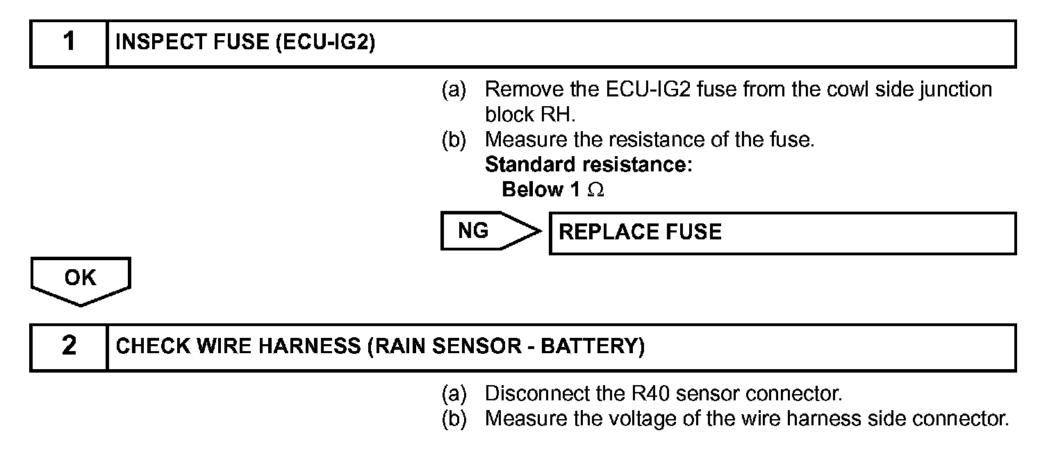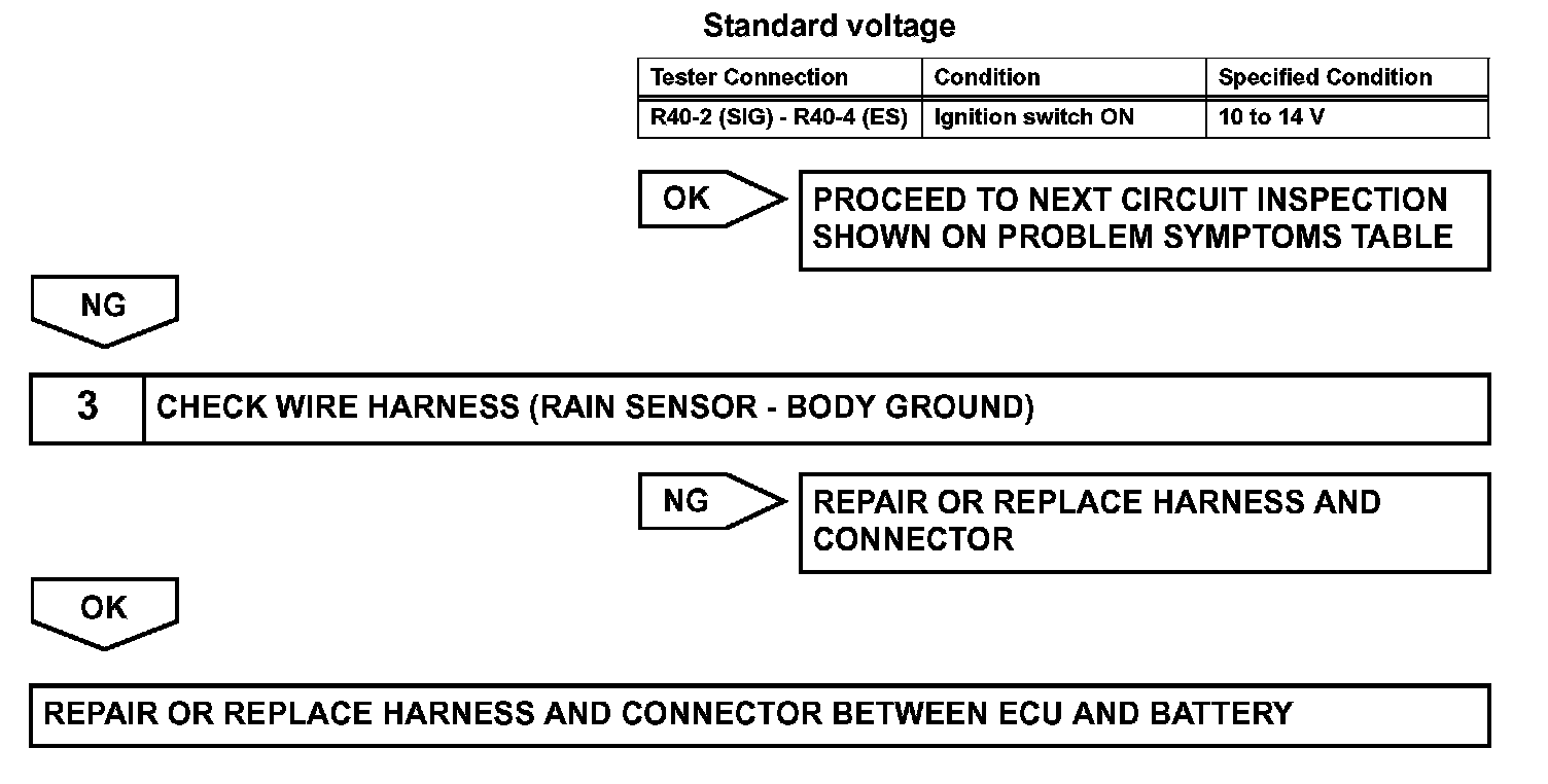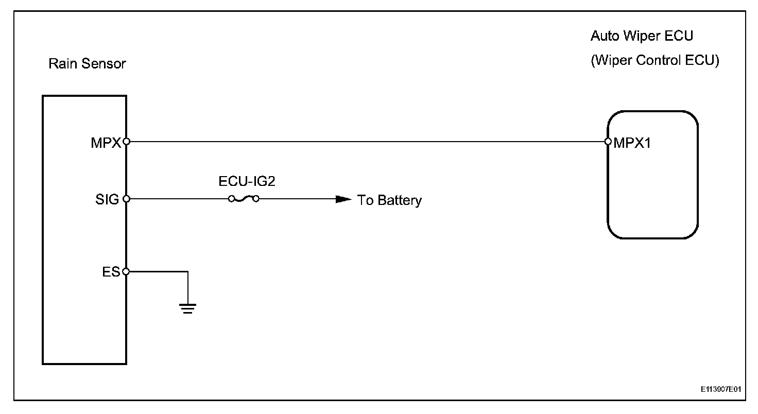 This circuit provides power to operate the rain sensor. The auto wiper system is operated when the wiper switch is in the AUTO position. The rain sensor is connected to each ECU at the multiplex communication circuit. When it detects raindrops that are on to the detection area of the windshield glass, it sends the wiper control signal according to the amount of raindrops.