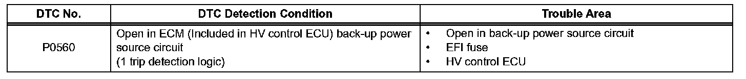 HINT: If DTC P0560 is set, the ECM (Included in HV control ECU) does not store other DTCs.